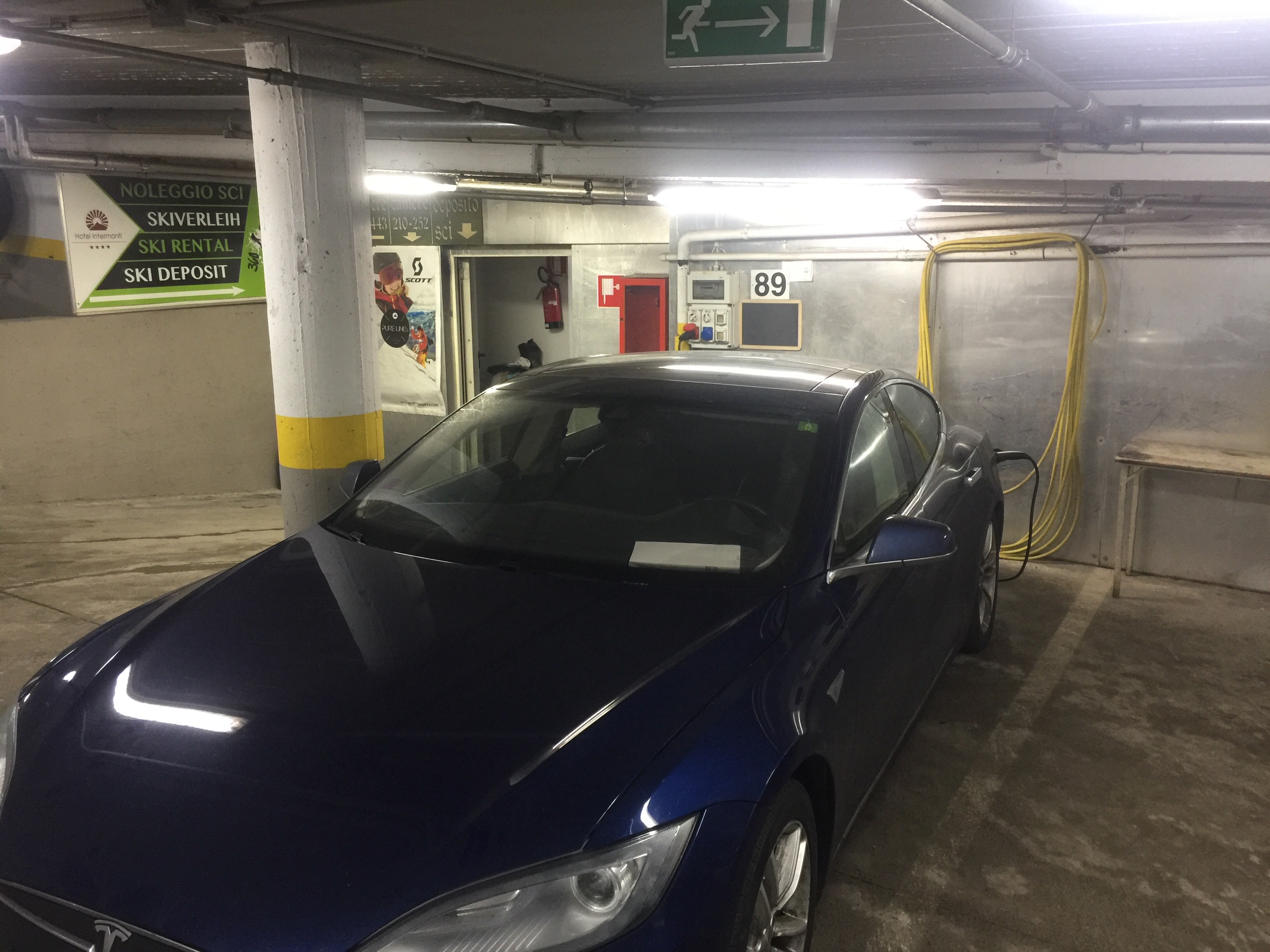 Fremme i Livigno kunne jeg konstatere at udlejeren's stikkontakt i kælderen havde jord, og nu kan jeg bare glæde mig til turen hjemad igen i en fuldt opladet Tesla. Aldrig har jeg følt mig så afslappet på en lang køretur som i år - Længe leve autopilot....det er simpelthen så fantastisk afslappende at køre med.