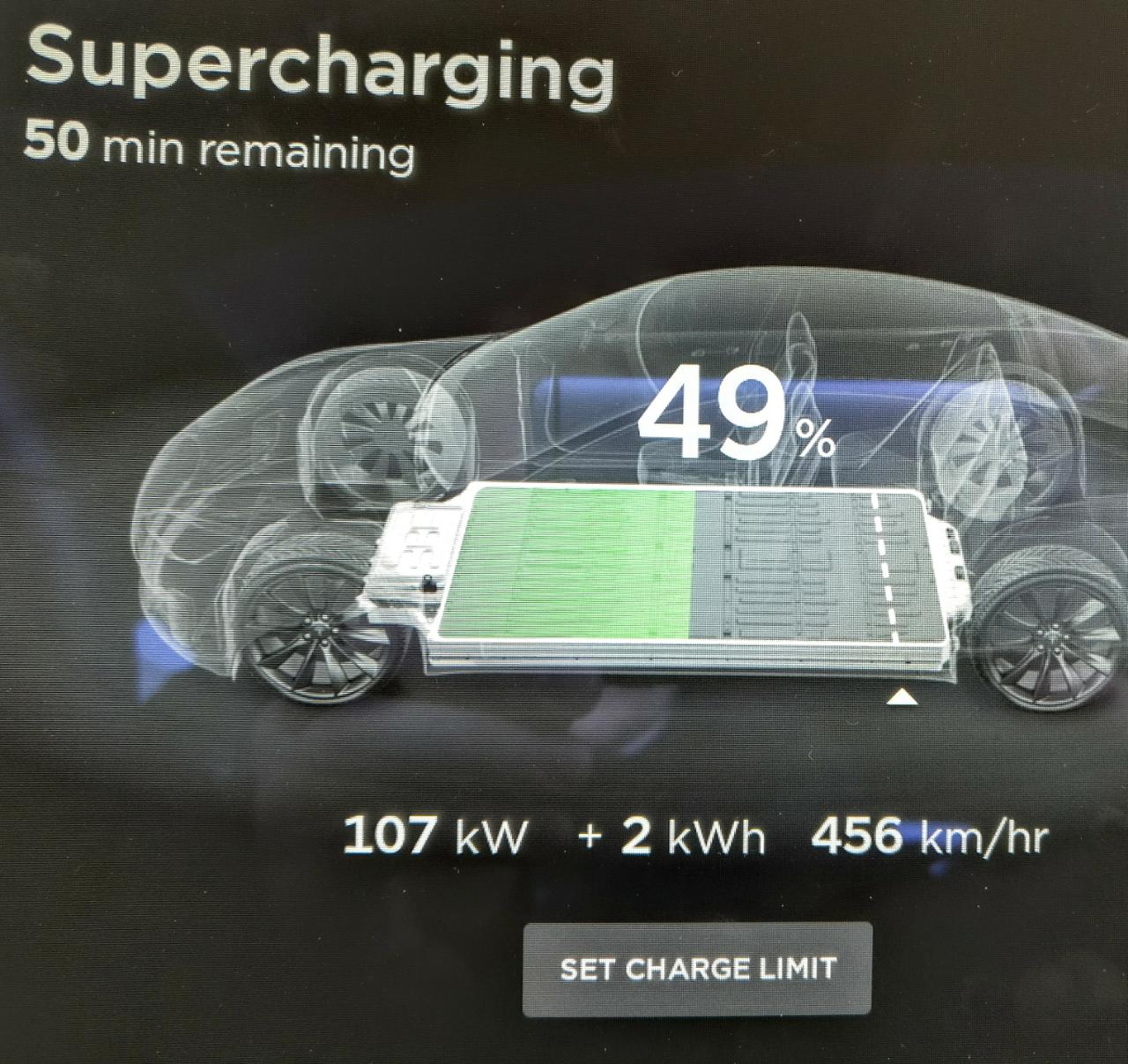 Uha jeg er helt misundelig på ladetiderne på de nye modeller. Med SoC på 49% ligger min 70D på ca 72kW, og ved 69% ca 50kW........