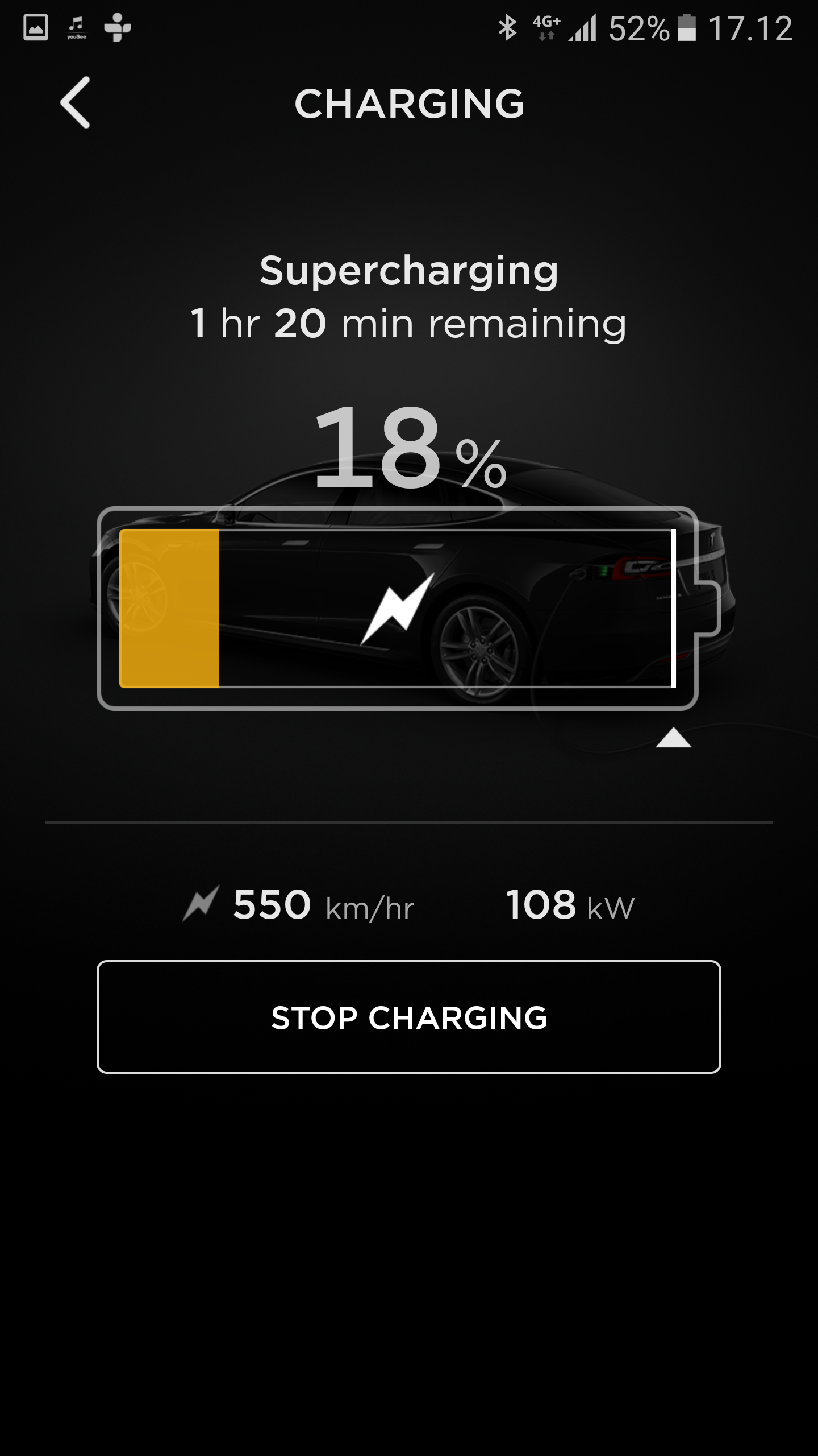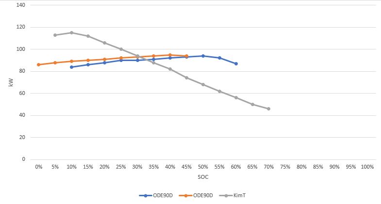 Og min 70D topper stadig ved 116kW ved lav SoC, men det er ikke i mange minutter