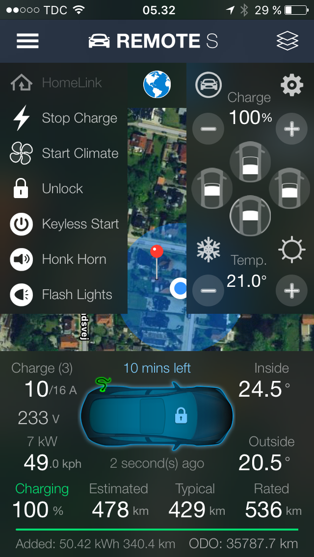 Den anden ladecyklus gik lidt i fisk, da ladningen blev afbrudt 5 gange undervejs, men startede af sig selv igen efter kort tid. Et opkald til Tesla afslørede, at netop den stall, jeg havde valgt, havde "poor health condition", selvom ladeeffekten var ganske pæn.