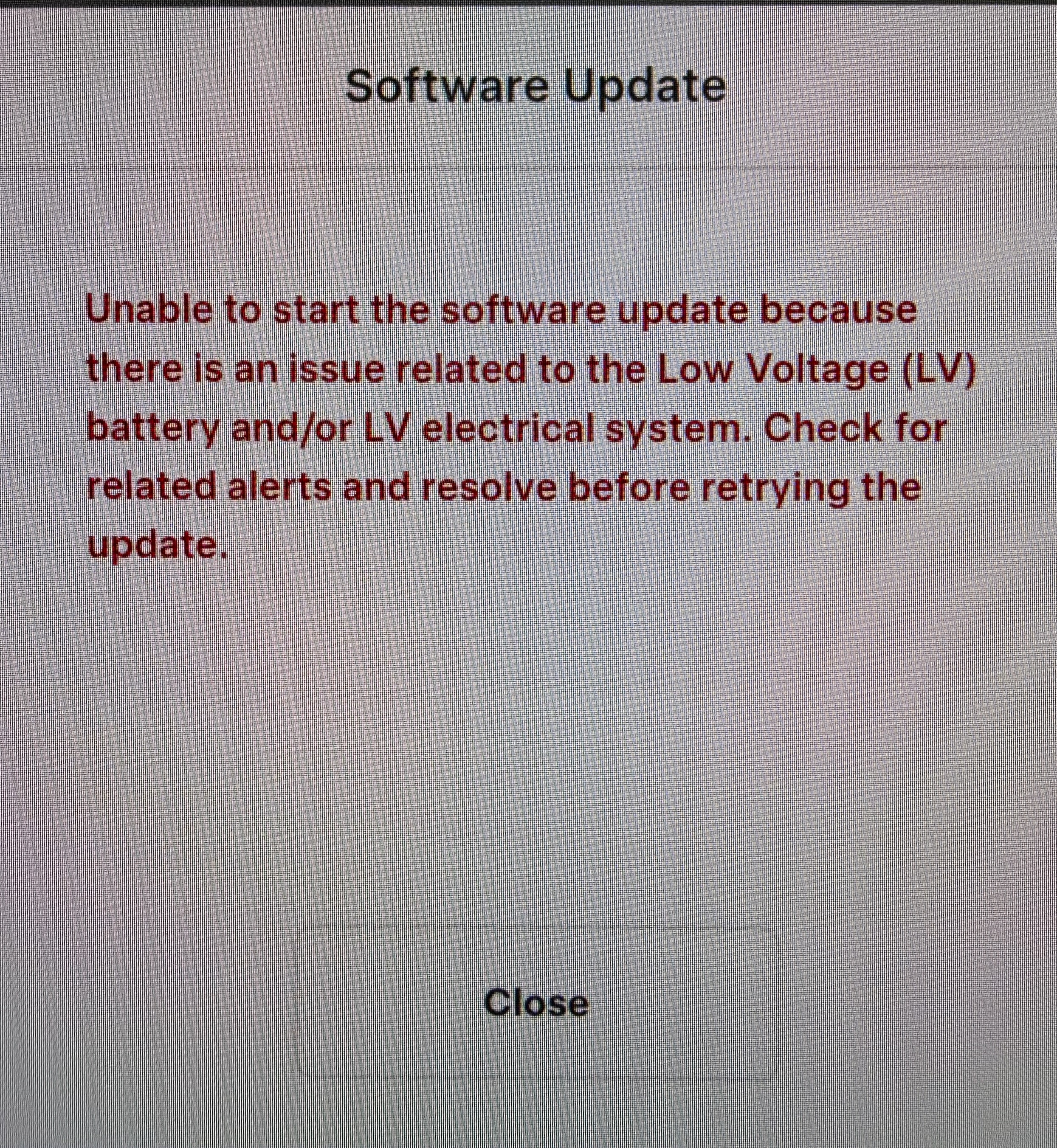 Jeg har haft et tilsvarende issue på min Model S. Fik skiftet 12 V-batteriet og kunne derefter opdatere uden problemer.