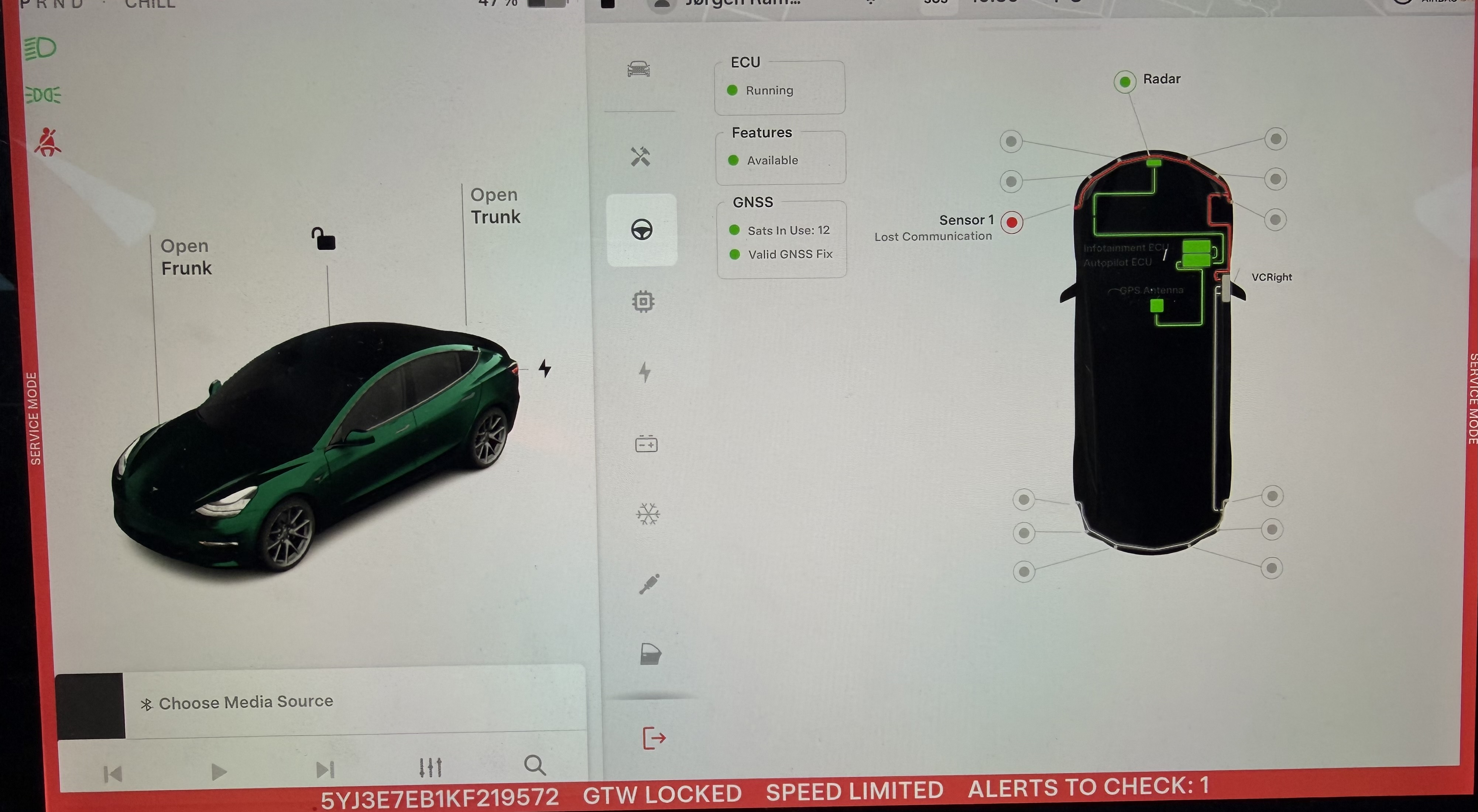 Og idag forsvinder fejlen hvis jeg sætter til Tesla Vision istedet for gammeldags sensor. Men jeg undre mig, fordi da jeg foretog testen forleden ved at kører tæt på forhindring, der gav den rød vifte ved bagende også ligesom ved forenden???