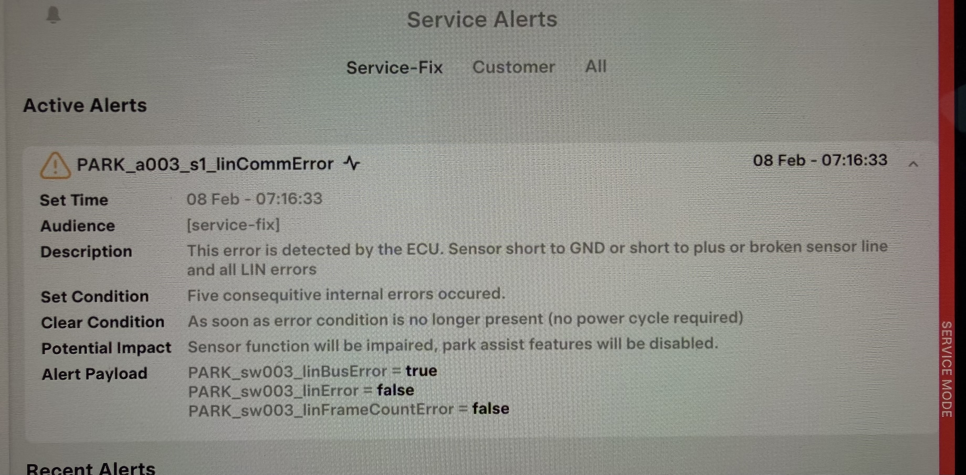 Derudover har jeg jo så aldrig leget i service menuen før, så bekymre det mig da lidt at der er så uhyggeligt mange alarmer med skruenøgle. Der er dælme mange hvis man scroller ned.